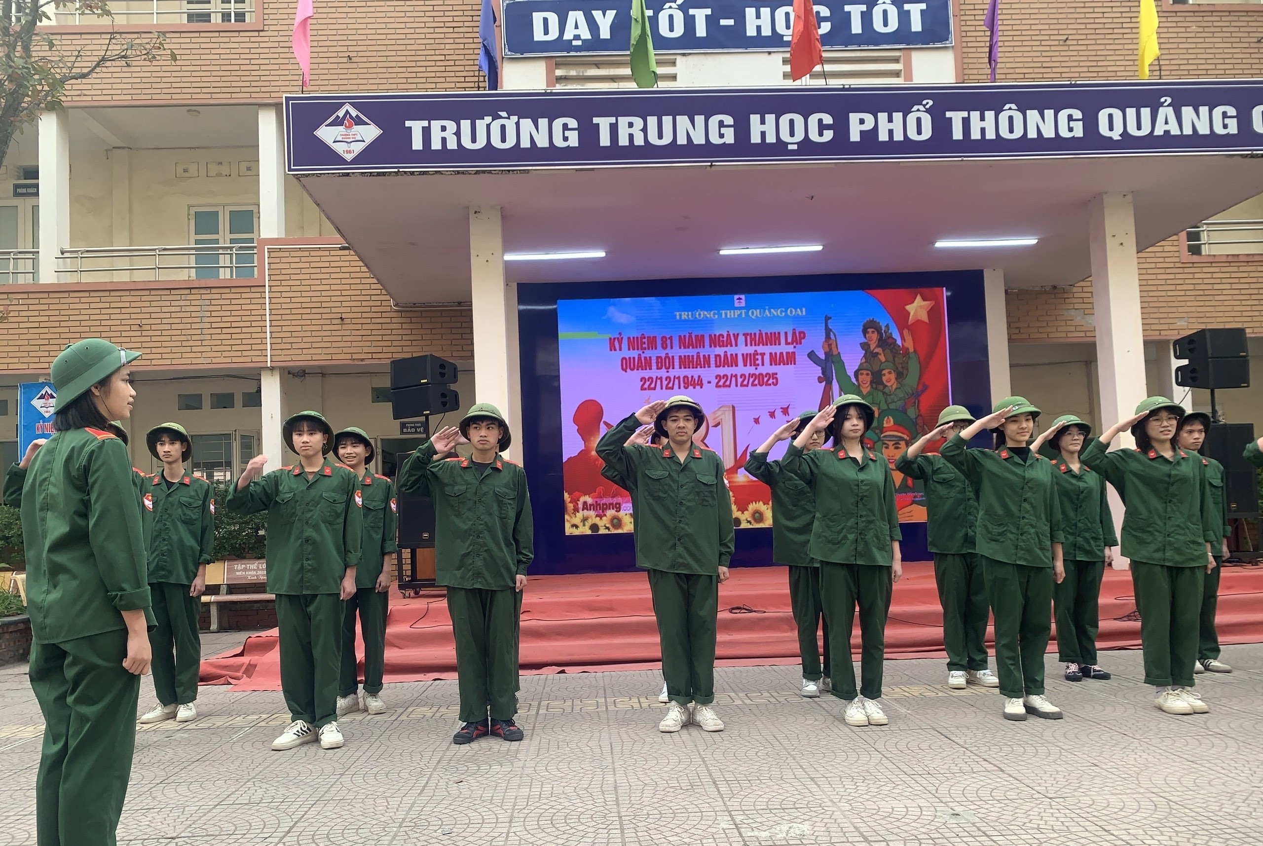 Nhân kỷ niệm 81 năm Ngày thành lập Quân đội nhân dân Việt Nam và 36 năm Ngày hội Quốc phòng toàn dân 22/12, Trường THPT Quảng Oai đã tổ chức nhiều hoạt động thiết thực, ý nghĩa nhằm tuyên truyền, giáo dục truyền thống cách mạng, lòng yêu nước và ý thức trách nhiệm đối với sự nghiệp xây dựng và bảo vệ Tổ quốc cho cán bộ, giáo viên, nhân viên và học sinh toàn trường.