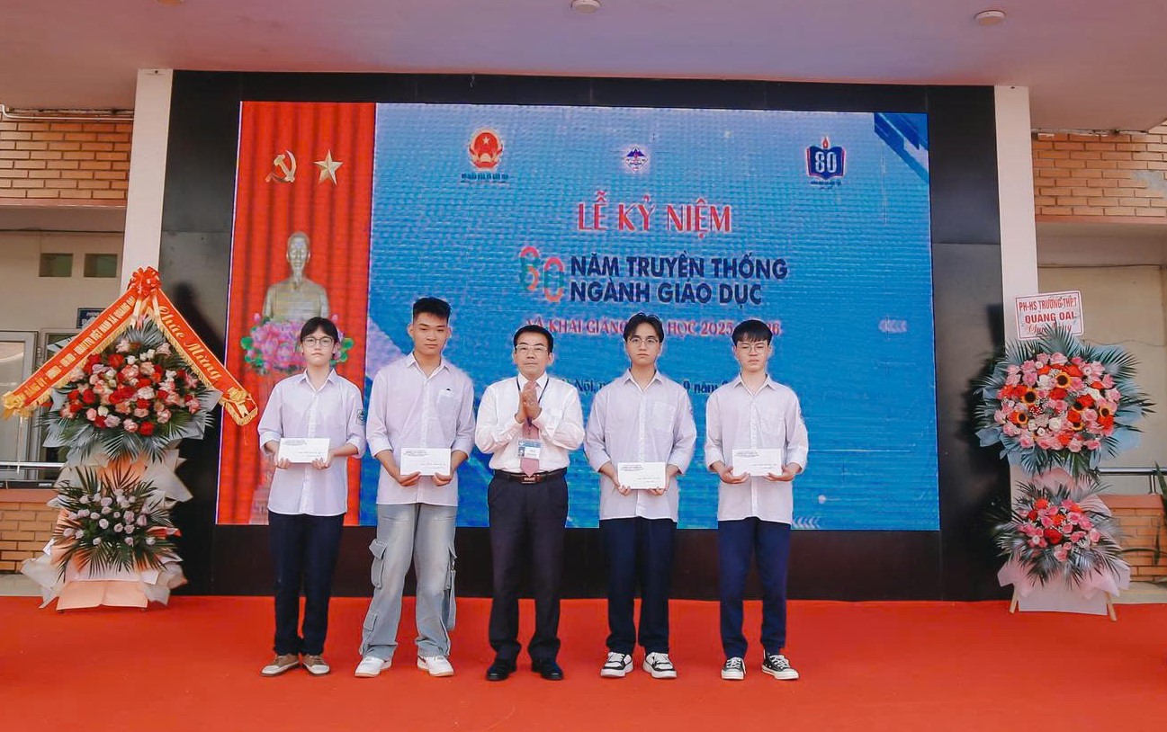 Nhà trường đã vinh danh, trao thưởng cho những học sinh đạt thành tích xuất sắc trong kỳ thi tốt nghiệp THPT 2025, học sinh có điểm thi thủ khoa vào lớp 10, đồng thời trao quà khuyến học cho các em học sinh vượt khó vươn lên trong học tập. Tổng cộng 31 học sinh đã được khen thưởng và tặng quà từ Quỹ khuyến học của nhà trường và các nhà tài trợ, với tổng trị giá 41 triệu đồng.