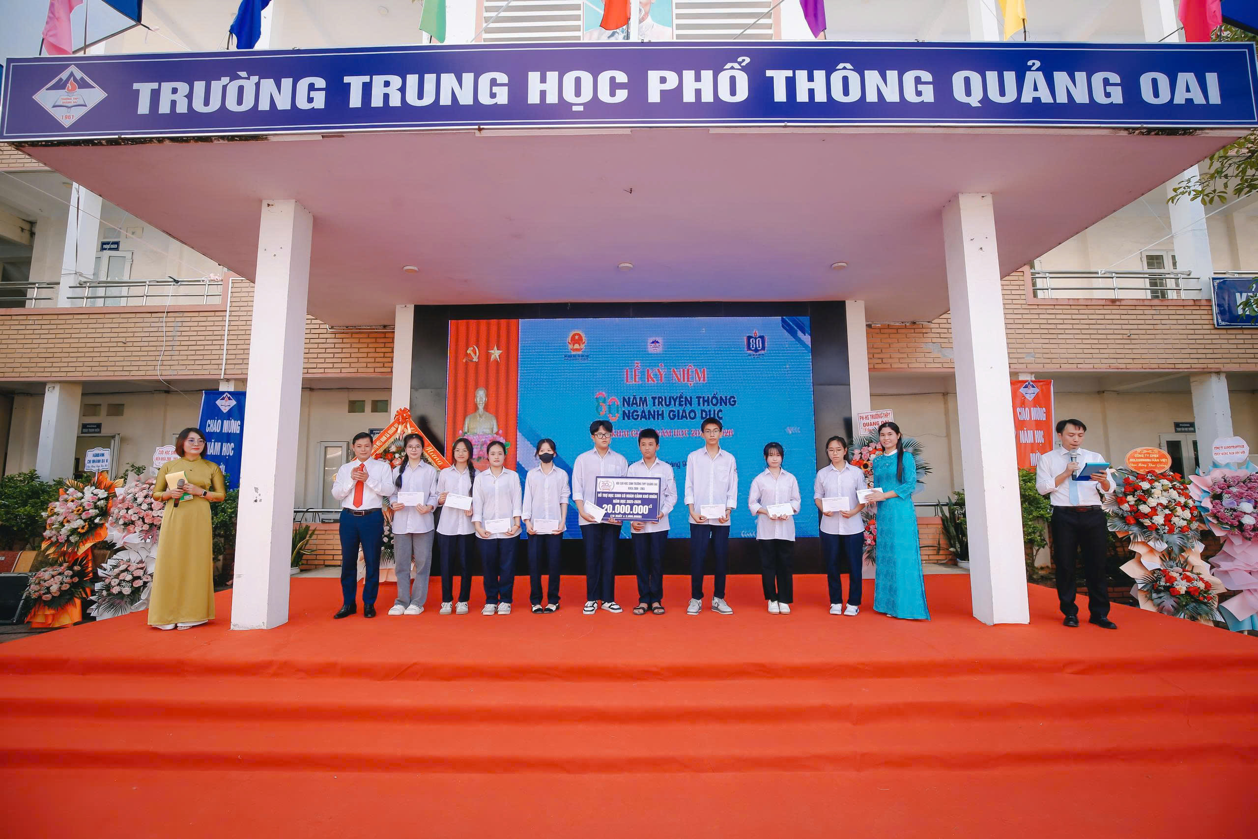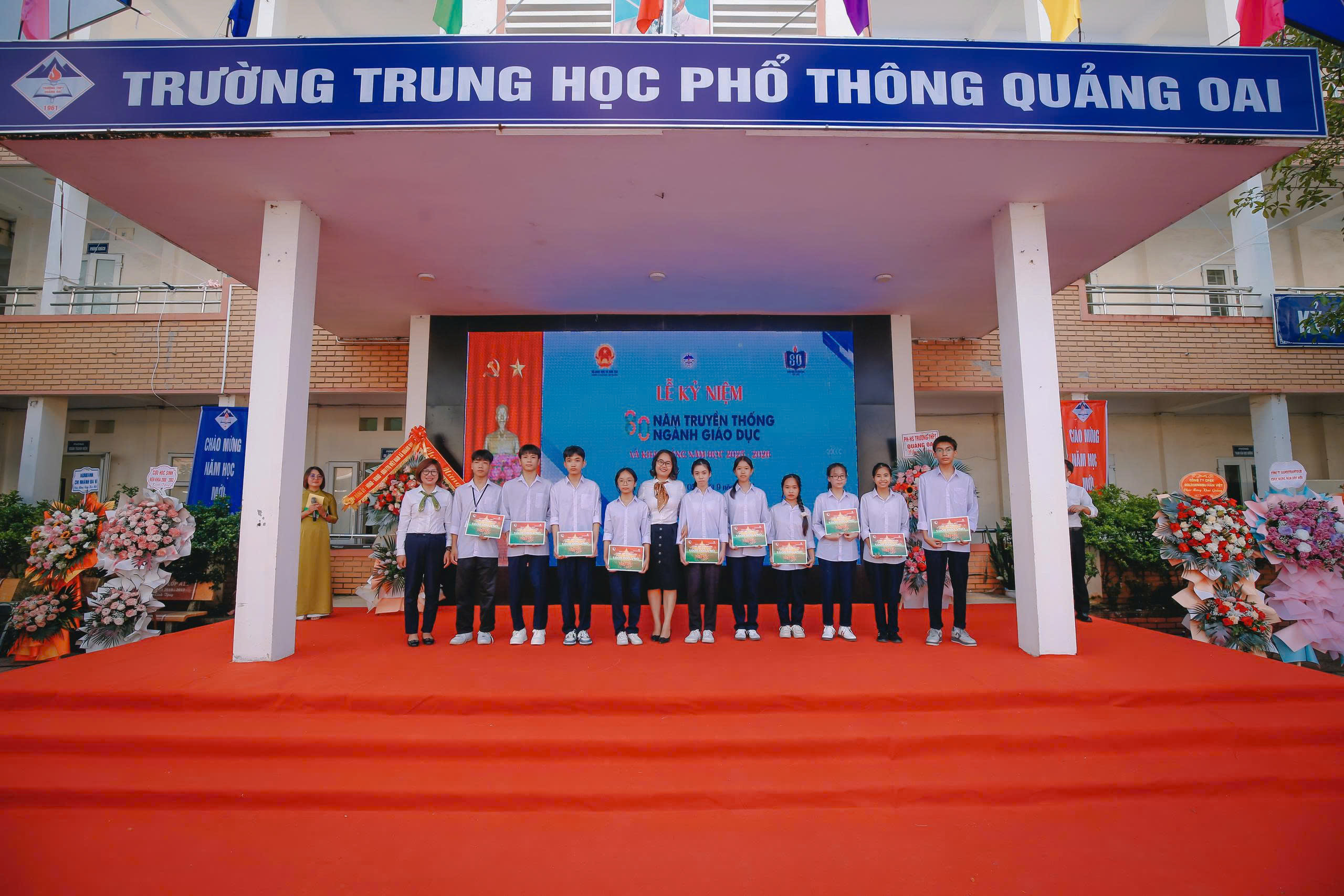 Đặc biệt, cùng với nhà tài trợ Ngân hàng Vietcombank CN Tây Hà Nội; Ban đại diện cựu học sinh các khóa 1992–1995 và 2000–2003 cũng trở về tri ân, trao tặng những phần quà ý nghĩa, tiếp thêm động lực cho thế hệ học sinh trường Quảng Oai.