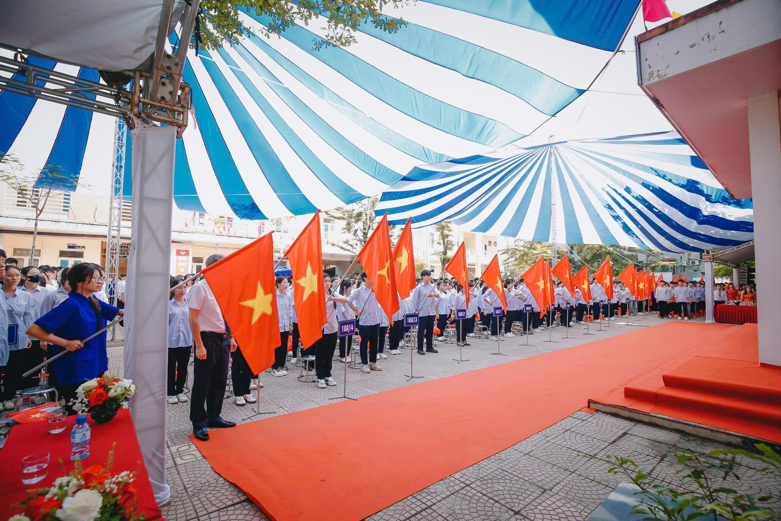 Ảnh: Nghi thức trao cờ truyền thống trường THPT Quảng Oai