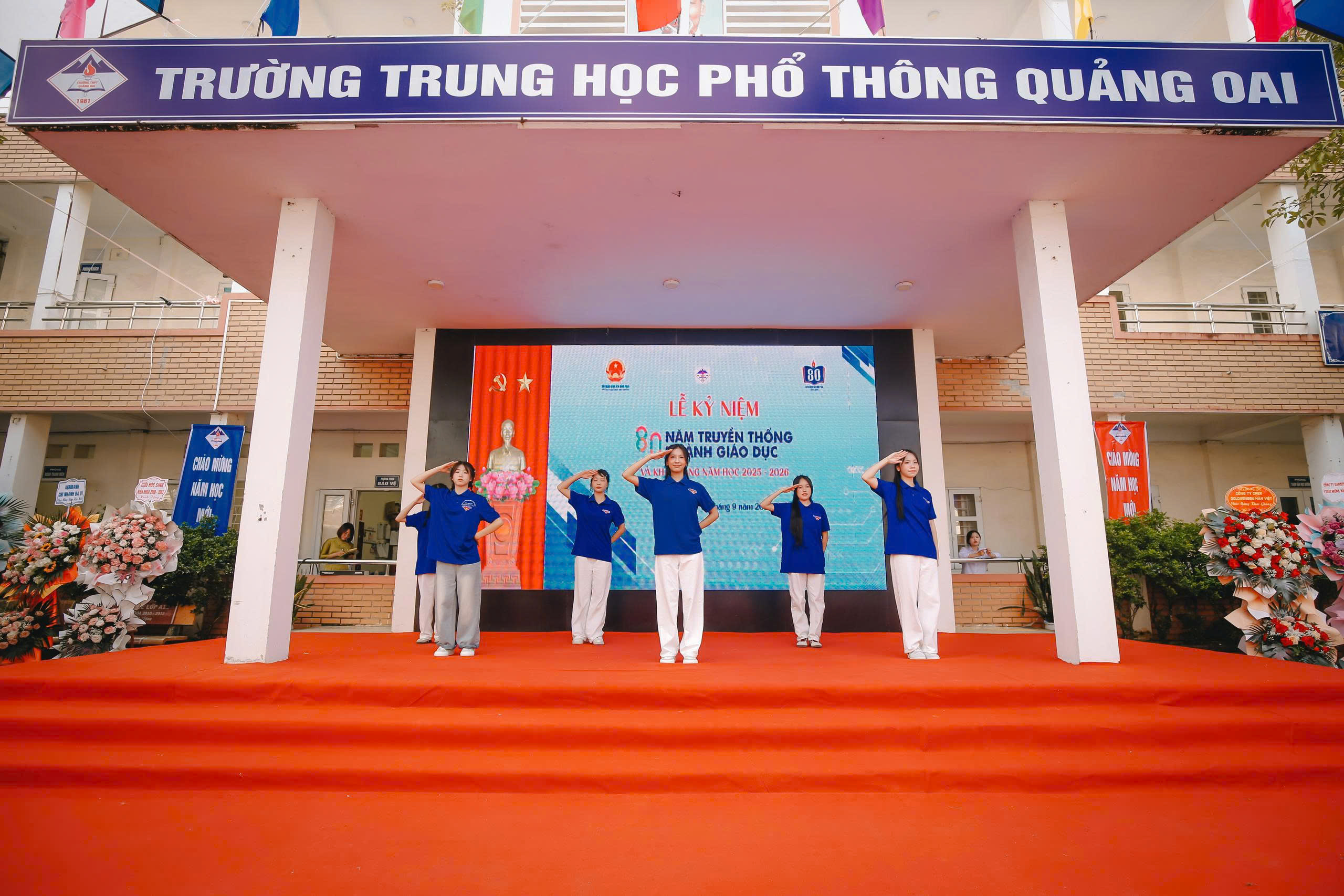 Sáng ngày 05/09/2025, cùng với gần 27 triệu học sinh - sinh viên cả nước, thầy và trò Trường THPT Quảng Oai đã tổ chức "Lễ kỷ niệm 80 năm truyền thống ngành giáo dục và Lễ khai giảng năm học 2025 - 2026" trong không khí trang trọng và phấn khởi. Đây là Lễ khai giảng đầu tiên các trường học trên cả nước tổ chức đồng loạt và dự trực tiếp từ điểm cầu Trung tâm Hội nghị Quốc gia. Sự kiện này là dấu ấn kỷ niệm 80 năm thành lập Bộ Quốc gia Giáo dục - nay là Bộ Giáo dục và Đào tạo.