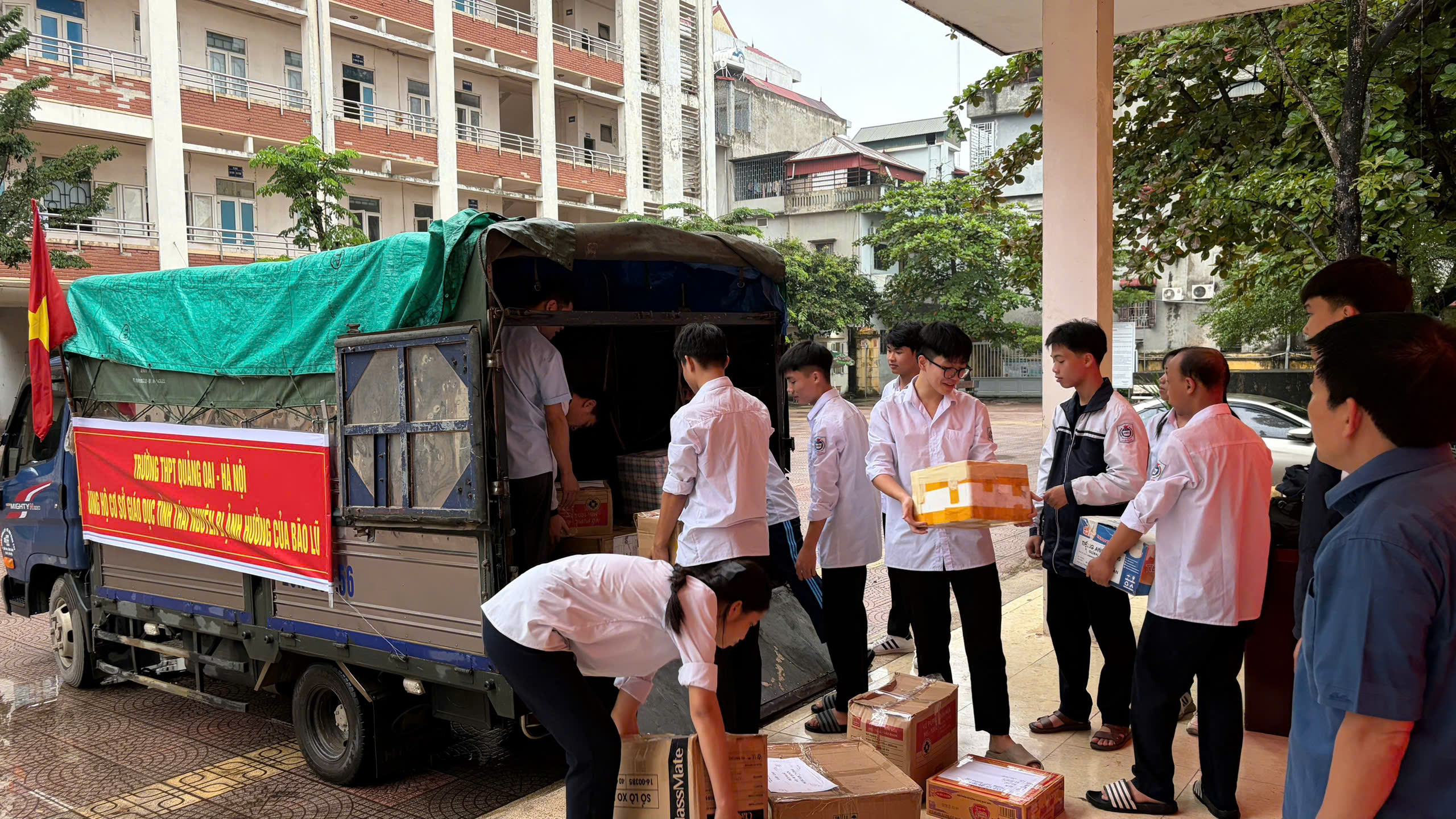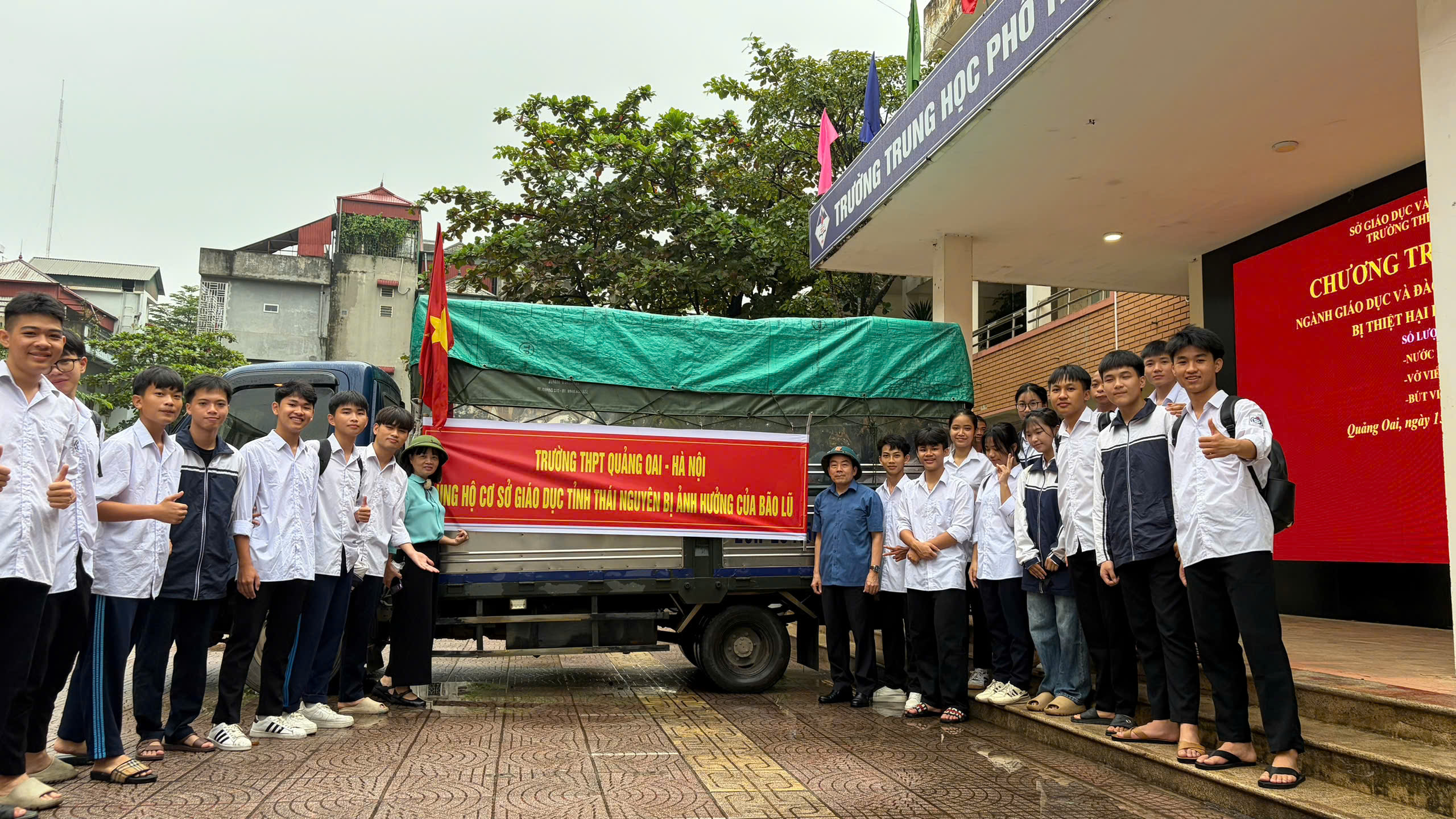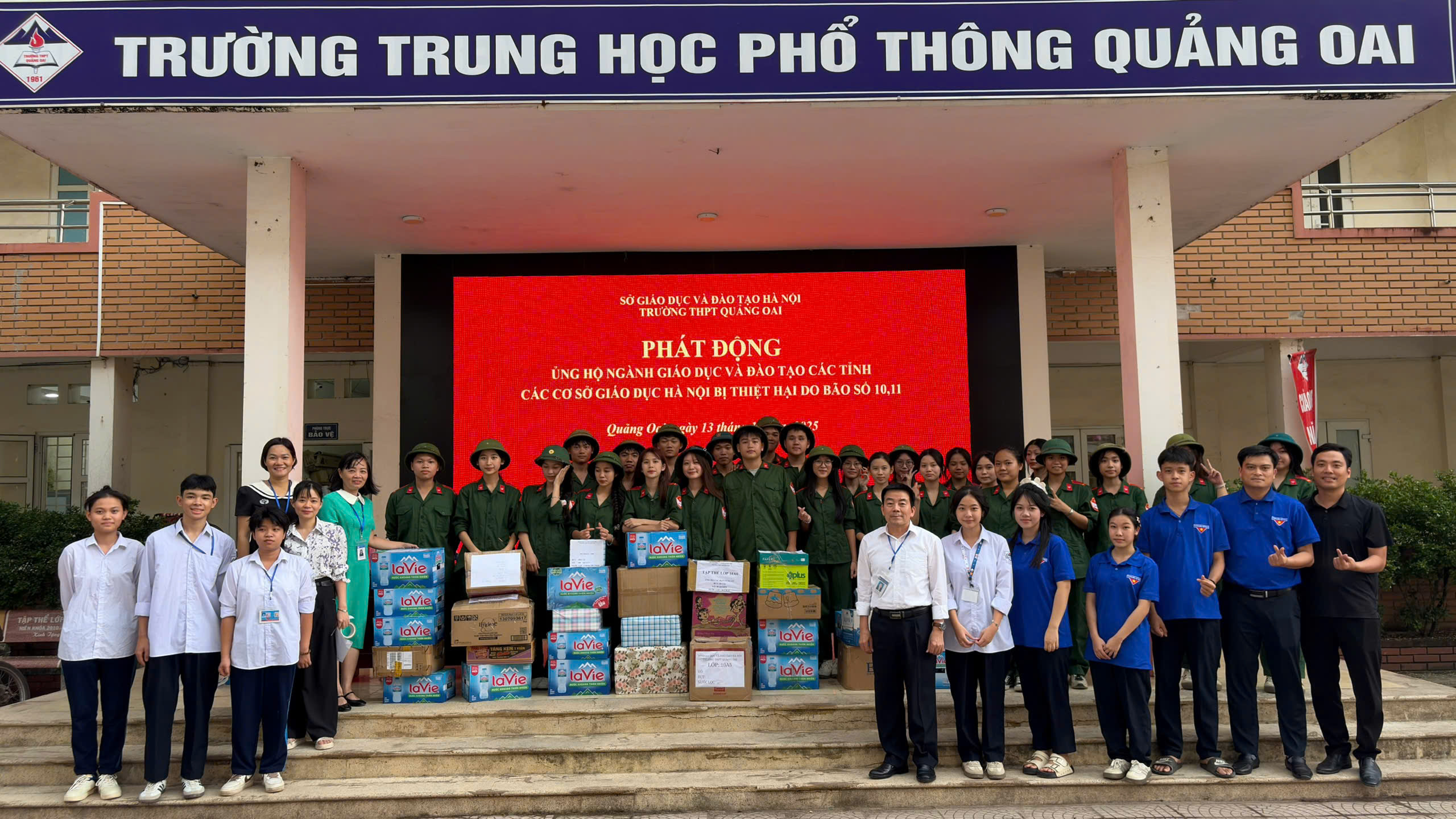 Với truyền thống tốt đẹp của trường THPT Quảng Oai, Chi ủy - BGH đã phát động tinh thần tự nguyện của các thầy cô giáo và các em học sinh bằng nhân lực vật lực ủng hộ cơ sở giáo dục tỉnh Thái Nguyên bị ảnh hưởng của bão lũ. Chỉ trong 3 ngày phát động đã kịp thời tổng hợp được số lượng lớn bút, vở, nước sạch và trực tiếp vận chuyển tới trường bạn trong ngày 15/10/2025.